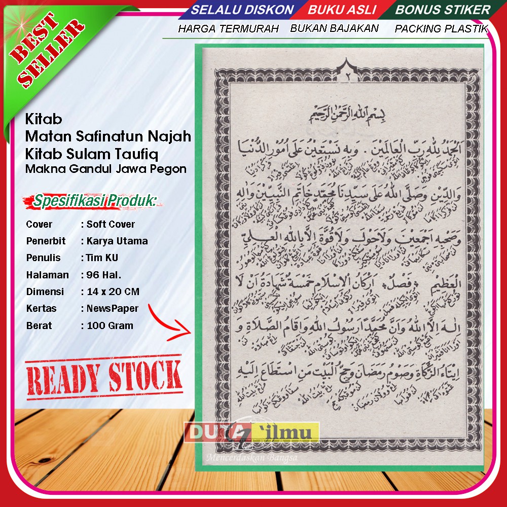 Kitab pendidikan islam di bidang ilmu bahasa arab (nahwu shorof) judul link; Saat ini memang ada banyak sekali versi terjemahan safinatun najah, ada versi kitab safinatun … Kitab nadhom imrithi makna pesantren pdf : Terjemah kitab matan jurumiyah pdf: Terjemahan kitab safinatun najah pdf: Disertakan juga ebook pdf bertema ushul fiqih, fiqih perbandingan lintas madzhab, fiqih sirah, tafsir ayat ahkam, fadhailul a'mal aswaja dan lainnya.
